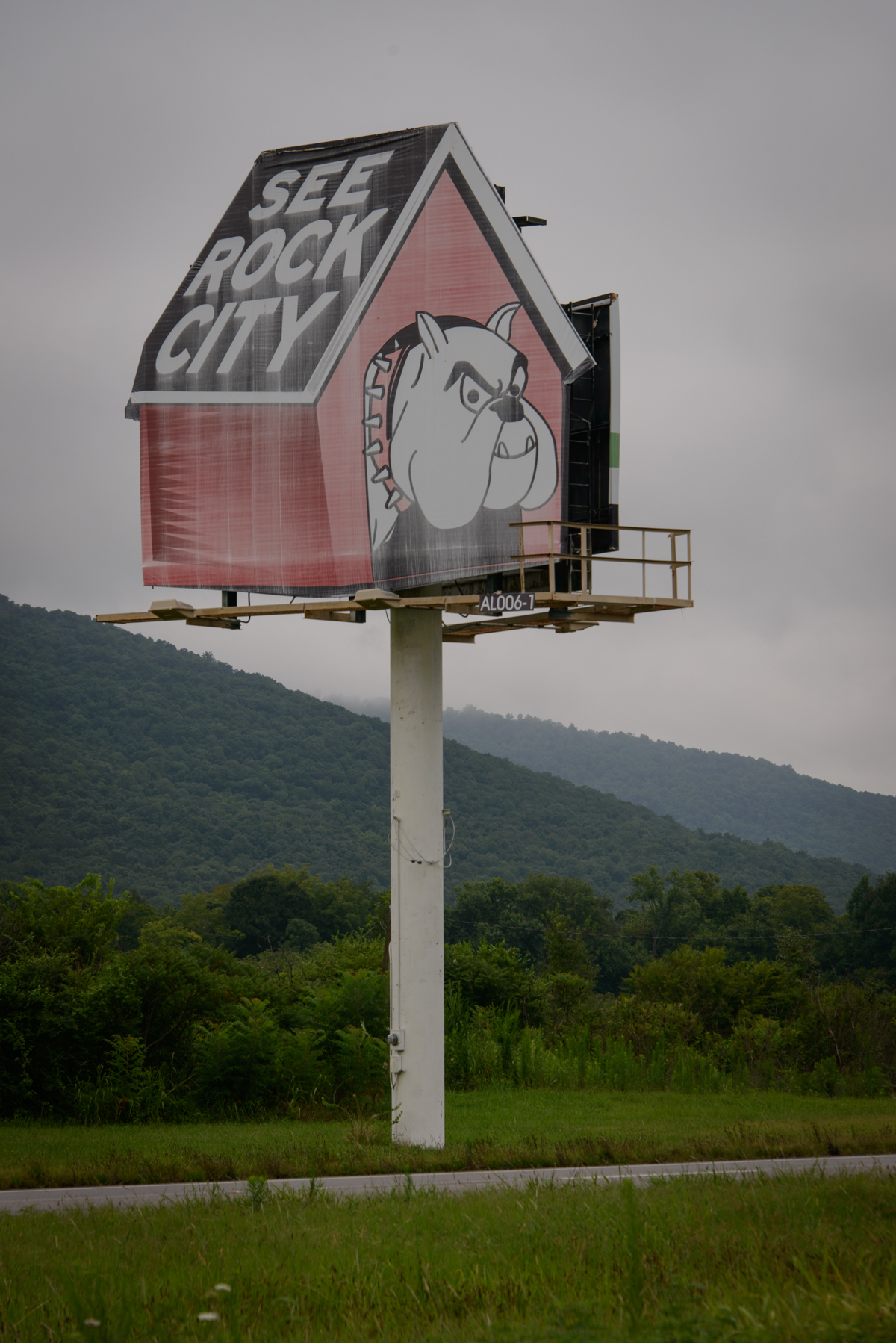 I have seen them all my life. What I never noticed until recently were doghouse billboard signs advertising Rock City. Here are two signs that are on Highway 72 in North Alabama.