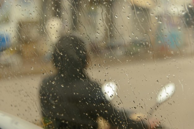 A woman on a motorscooter braves the heavy rain on her commute from Tamale Technical University. Someone made the observation that women are seldom seen riding motorscooters around in Southern or Central Ghana, but in Tamale I saw many women on motorscooters Ghana.