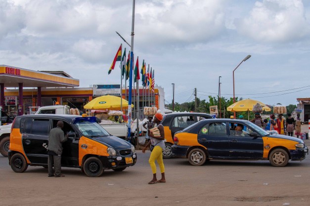 Ghana has brilliant colors everywhere. So much so, that I began to notice and then look for instances of bookend colors — colors that appear on either side of a central figure. In this image we see black, orange, and yellow on either side of a woman wearing yellow and orange with a gray blouse – a shade of black. I will post a series of pictures with bookend colors. Look around and see if you spot bookend colors around you.