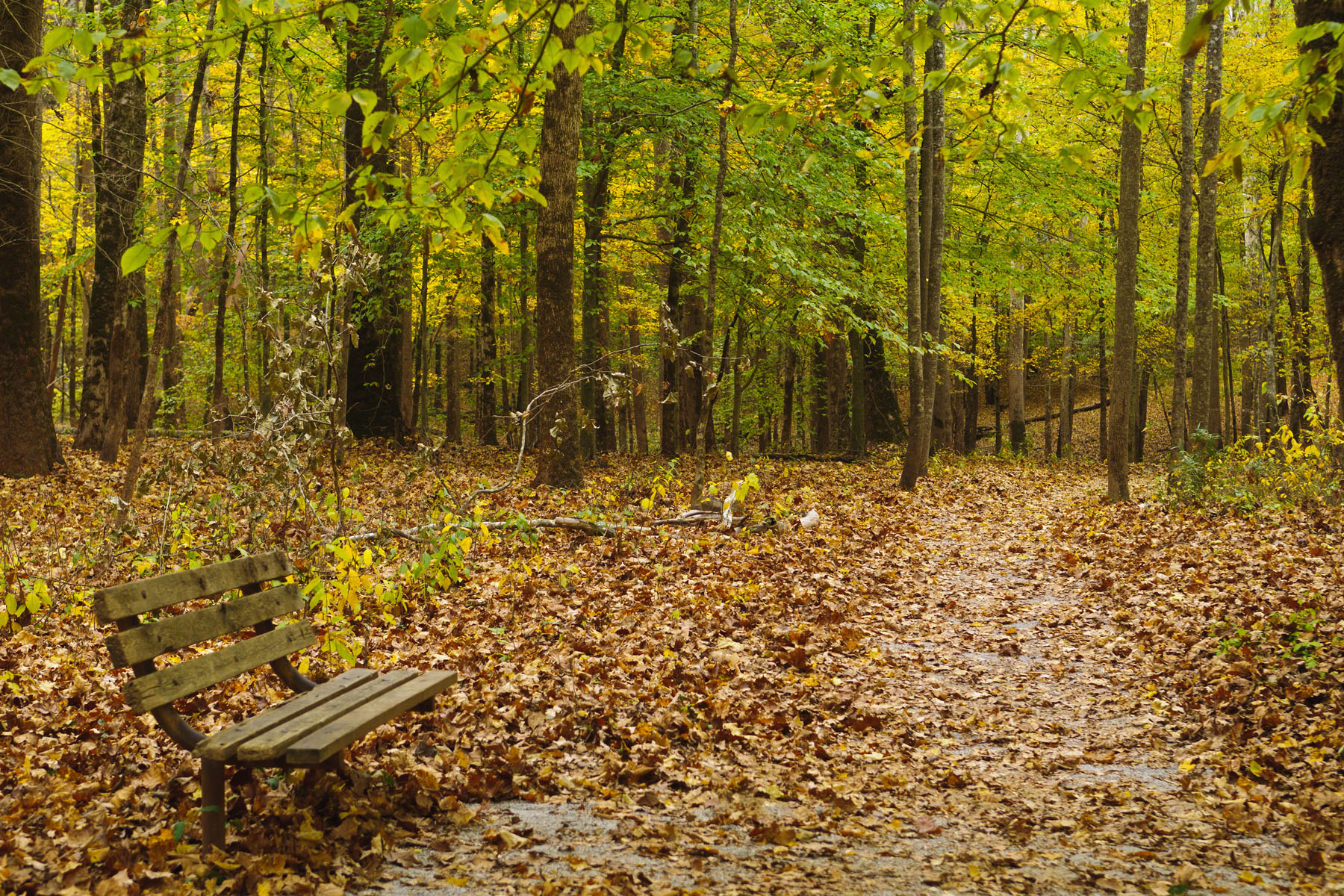 Benches are wonderful places to sit and enjoy the scenery any time of year. During the Fall season one can sit and enjoy seeing the greens of summer chnage to yellow, and finally fall to create an ochre carpet on the forest floor.